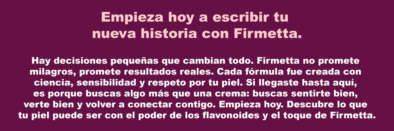 Firmetta está formulada con flavonoides, colágeno, elastina y ácido hialurónico, ingredientes que trabajan desde adentro para devolverle firmeza, elasticidad y vida real a tu piel.